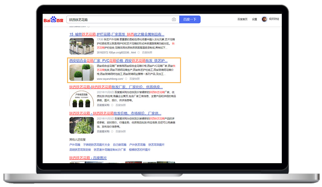 官網(wǎng)優(yōu)化:陜西鐵藝花箱、陜西PVC花箱、西安廣場花箱、西*鋁花箱、西安工程花箱等關(guān)鍵詞,穩(wěn)居百度首頁展示,助力巖之隆實現(xiàn)推廣轉(zhuǎn)化、*獲客。